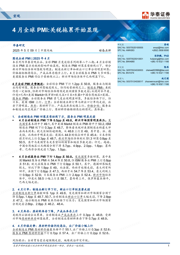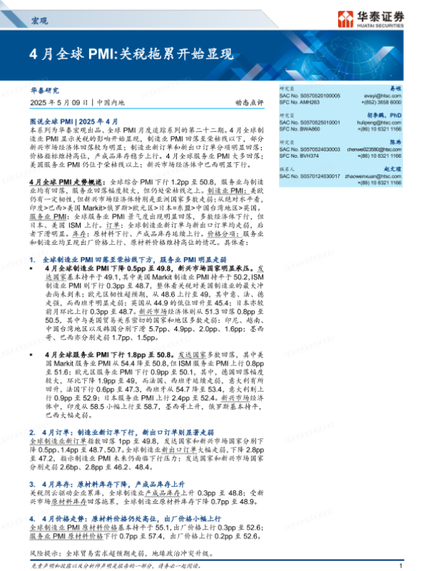 【华泰证券】【20250509】4月全球PMI:关税拖累开始显现-19页
