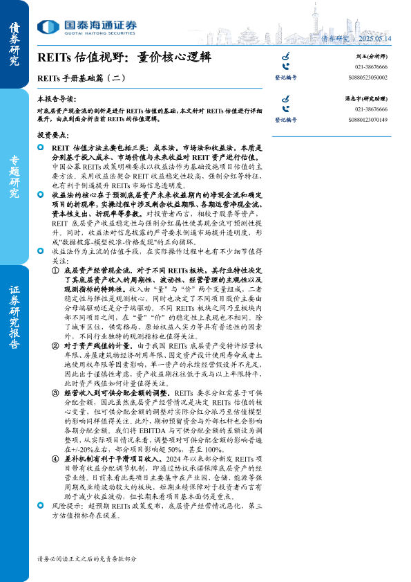 【国泰海通证券】【20250514】REITs手册基础篇(二):REITs估值视野,量价核心逻辑-12页