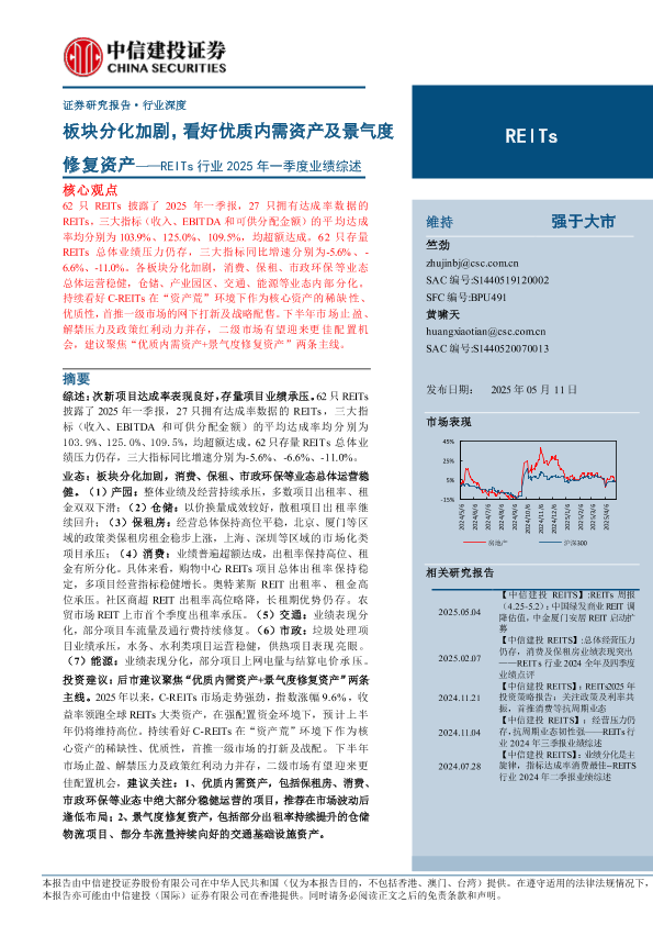 【中信建投证券】【20250511】REITs行业2025年一季度业绩综述:板块分化加剧,看好优质内需资产及景气度修复资产-28页