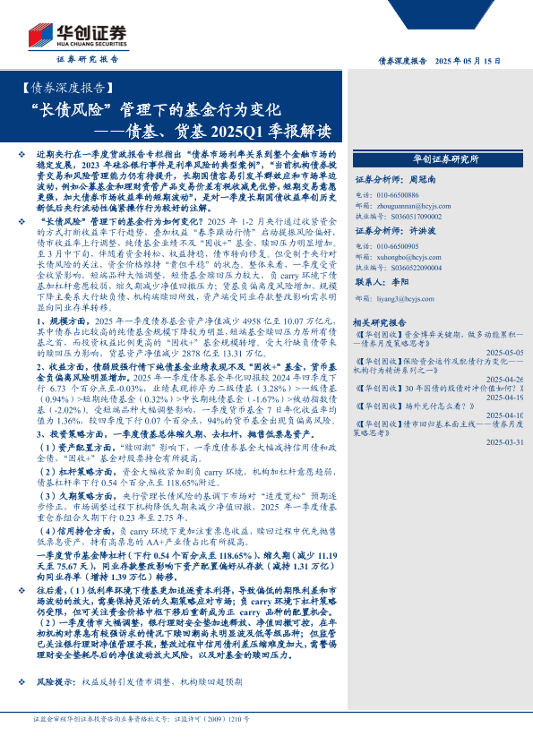 【华创证券】【20250515】债基、货基2025Q1季报解读:“长债风险”管理下的基金行为变化-31页