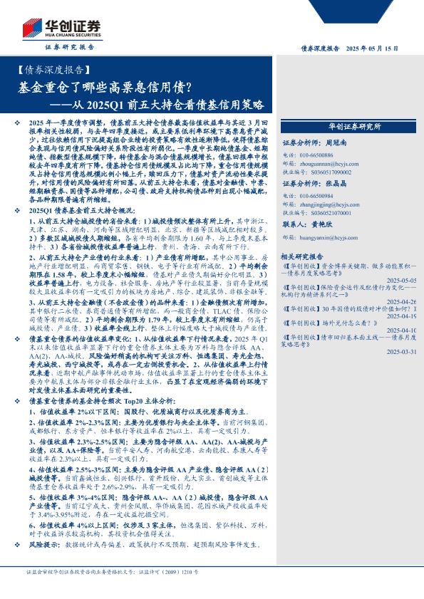 【华创证券】【20250515】从2025Q1前五大持仓看债基信用策略:基金重仓了哪些高票息信用债?-21页