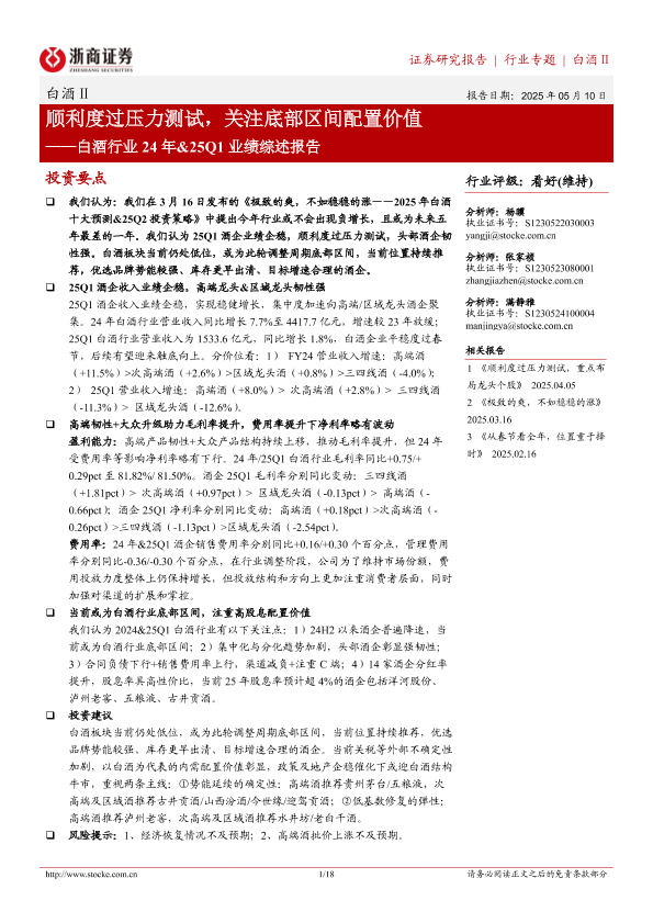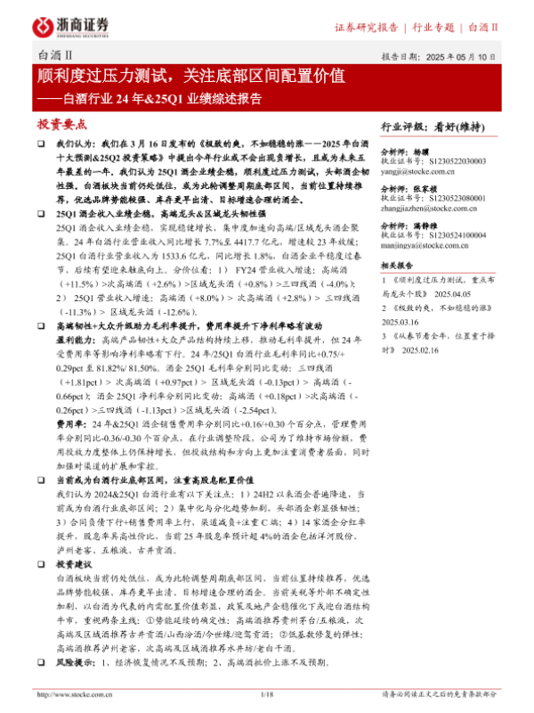 【浙商证券】【20250510】白酒行业24年&25Q1业绩综述报告:顺利度过压力测试,关注底部区间配置价值-18页