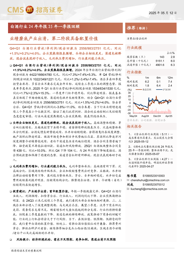 【海通证券】【20250512】白酒行业24年年报25年一季报回顾:业绩磨底产业出清,第二阶段具备配置价值-14页