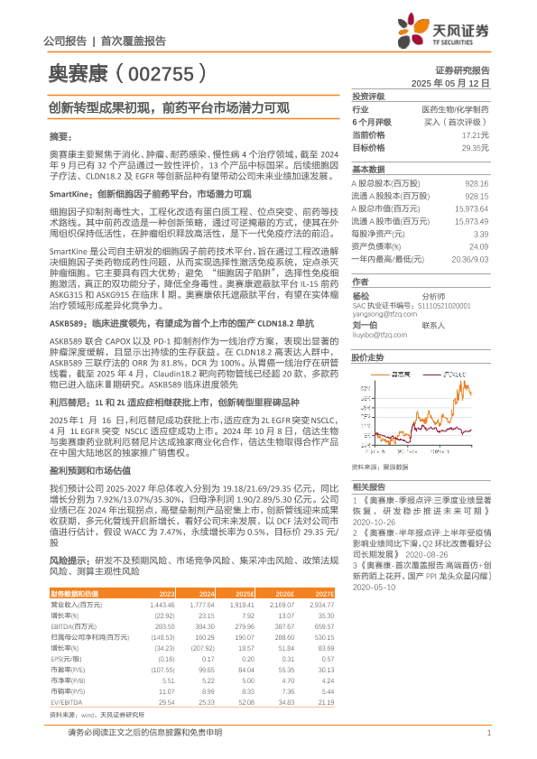 【天风证券】【20250512】奥赛康(002755)创新转型成果初现,前药平台市场潜力可观-31页