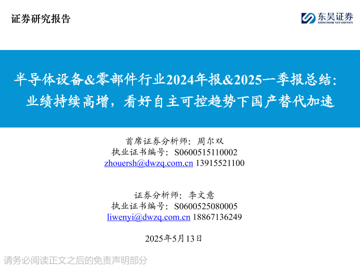 【东吴证券】【20250513】半导体设备&零部件行业2024年报&2025一季报总结-52页