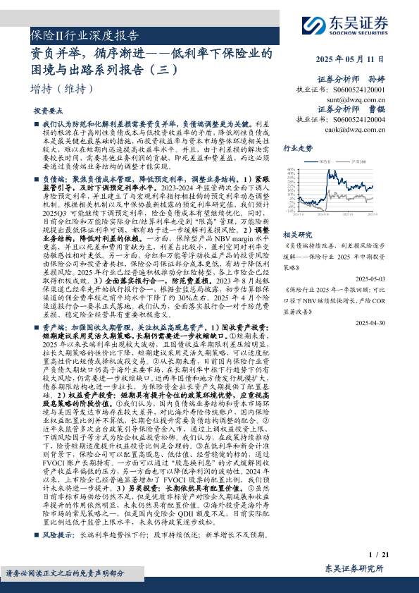 【东吴证券】【20250511】保险Ⅱ行业深度报告:低利率下保险业的困境与出路系列报告(三),资负并举,循序渐进-21页