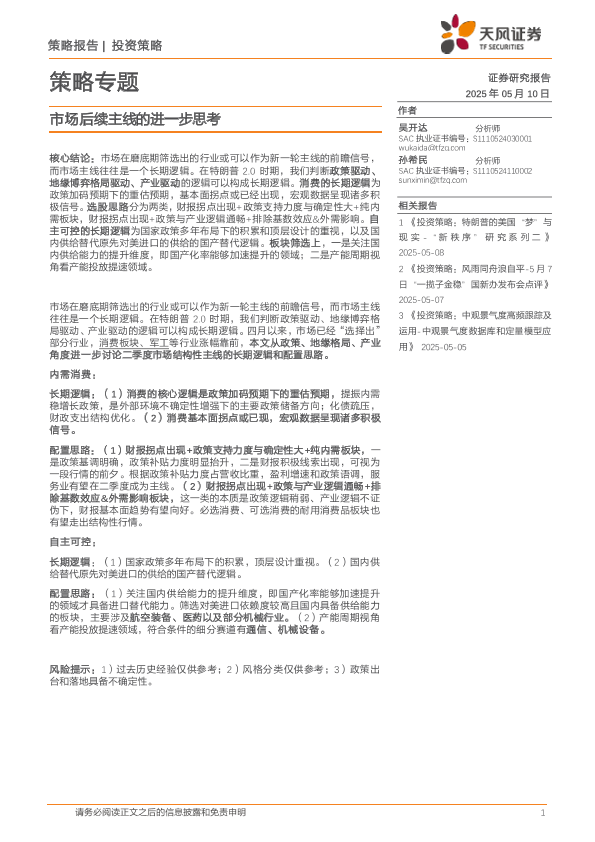 【天风证券】【20250510】策略专题:市场后续主线的进一步思考-10页