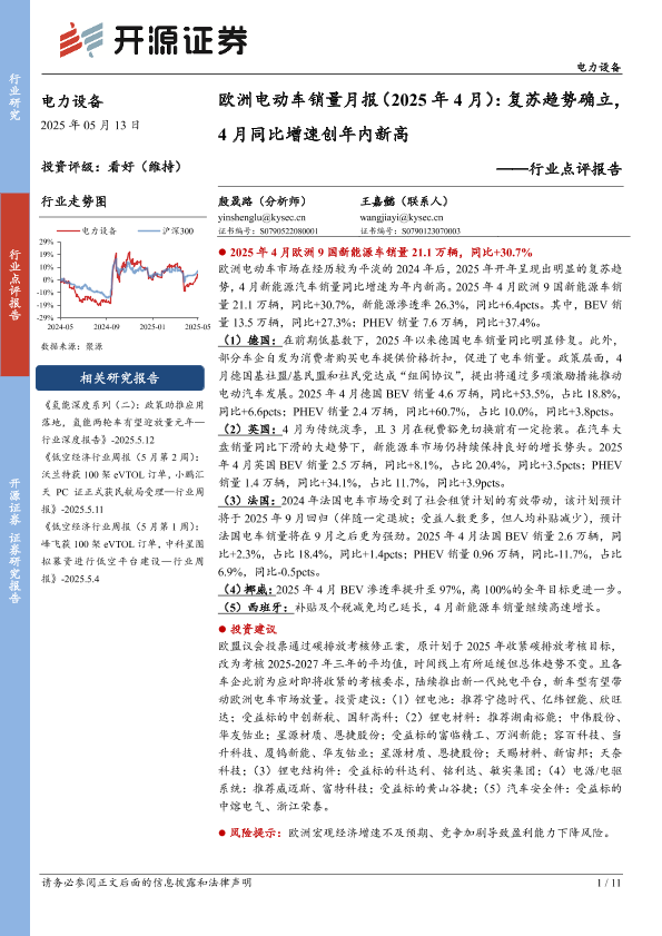 【开源证券】【20250513】欧洲电动车销量月报(2025年4月):复苏趋势确立,4月同比增速创年内新高-11页
