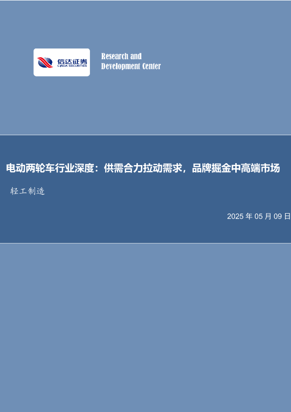 【信达证券】【20250509】电动两轮车行业深度:供需合力拉动需求,品牌掘金中高端市场-32页
