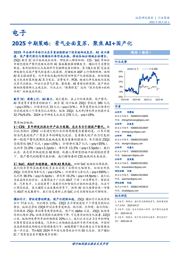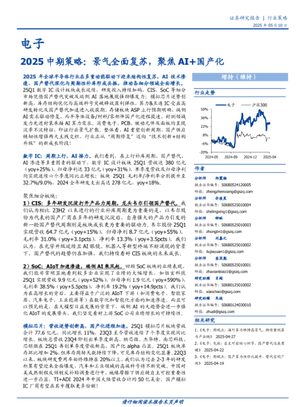 【国盛证券】【20250510】电子行业2025中期策略:景气全面复苏,聚焦AI+国产化-125页