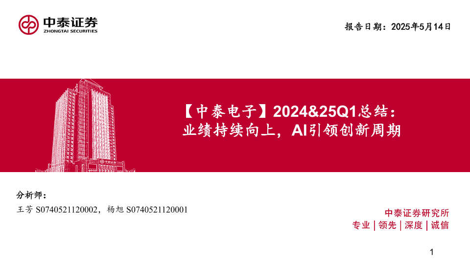 【中泰证券】【20250514】电子行业2024&25Q1总结:业绩持续向上,AI引领创新周期-97页