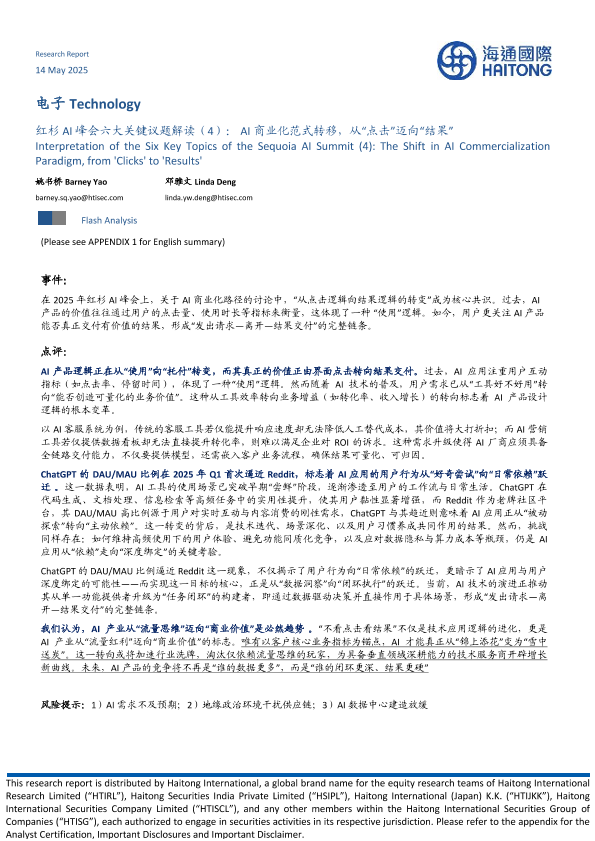 【海通国际】【20250514】电子行业红杉AI峰会六大关键议题解读(4):AI商业化范式转移,从“点击”迈向“结果”-10页
