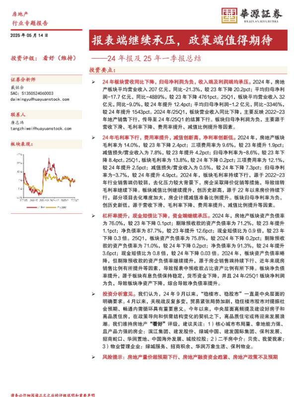 【华源证券】【20250514】房地产行业24年报及25年一季报总结-15页