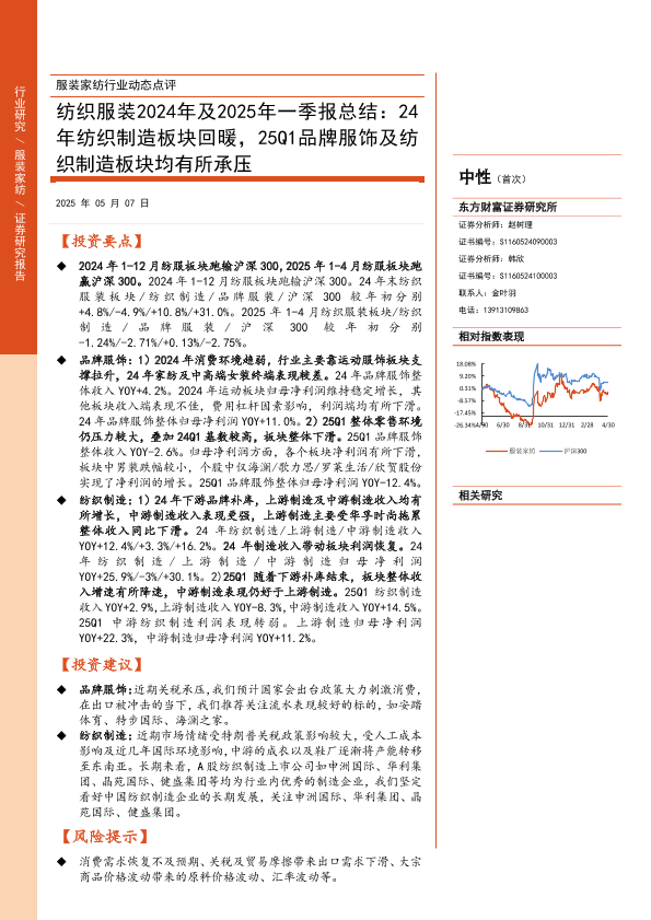 【东方财富证券】【20250507】纺织服装行业2024年及2025年一季报总结-15页
