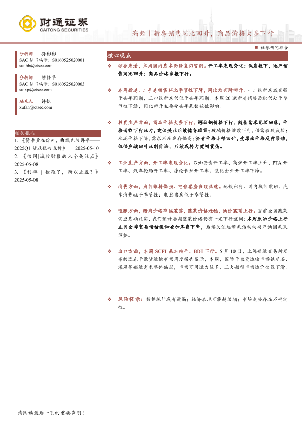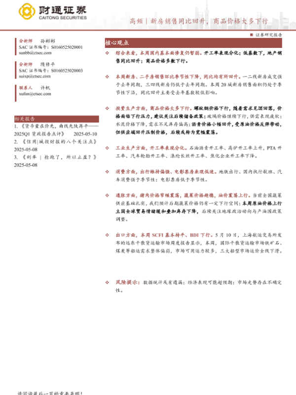 【财通证券】【20250510】高频|新房销售同比回升,商品价格大多下行-13页
