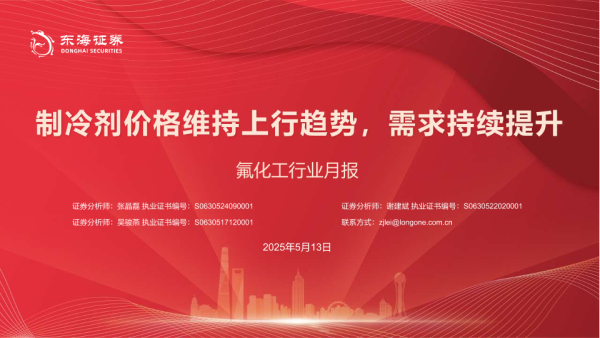 【东海证券】【20250513】氟化工行业月报:制冷剂价格维持上行趋势,需求持续提升-23页