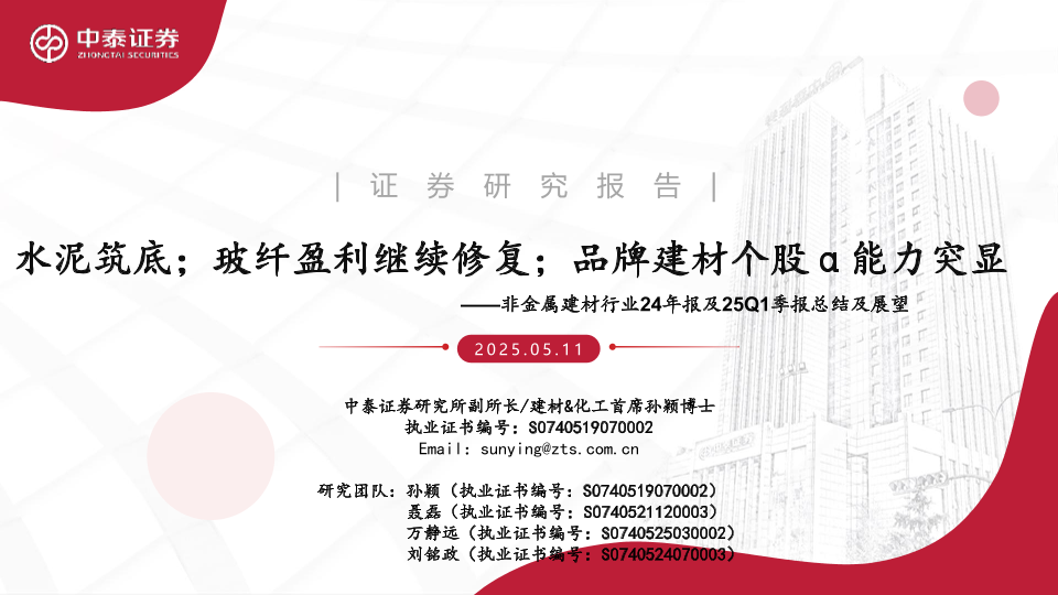 【中泰证券】【20250511】非金属建材行业24年报及25Q1季报总结及展望-60页
