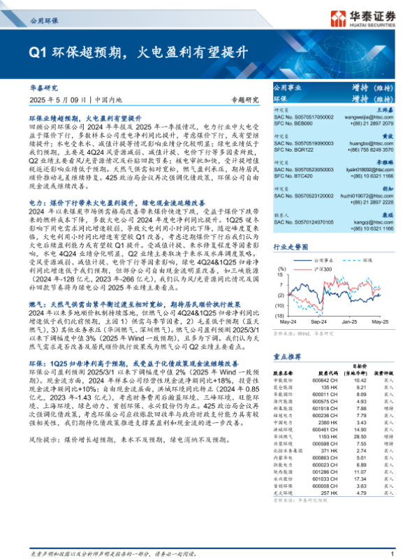 【华泰证券】【20250509】公用环保行业专题研究:Q1环保超预期,火电盈利有望提升-20页