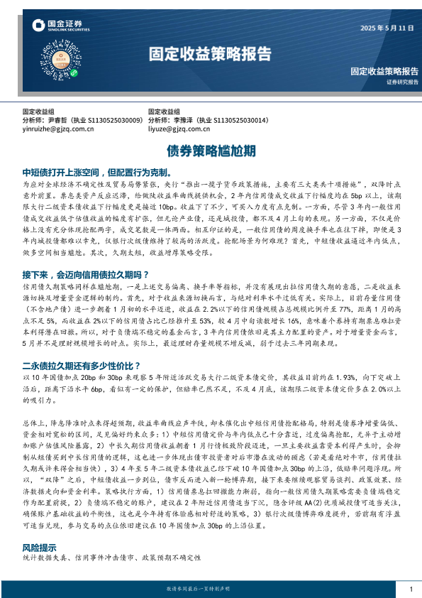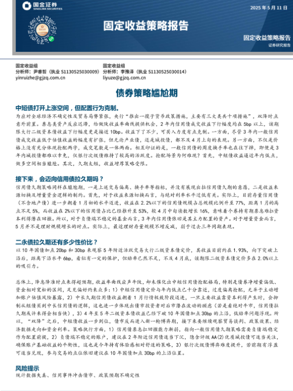 【国金证券】【20250511】固定收益策略报告:债券策略尴尬期-12页