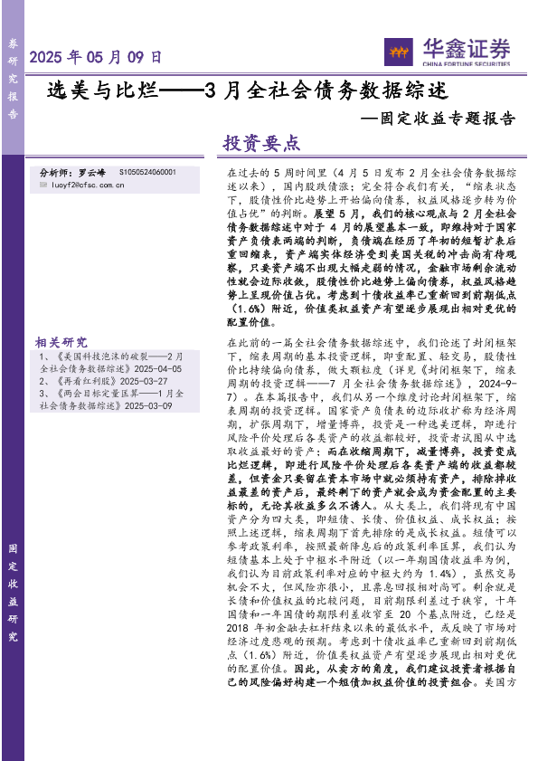 【华鑫证券】【20250509】选美与比烂——3月全社会债务数据综述-14页