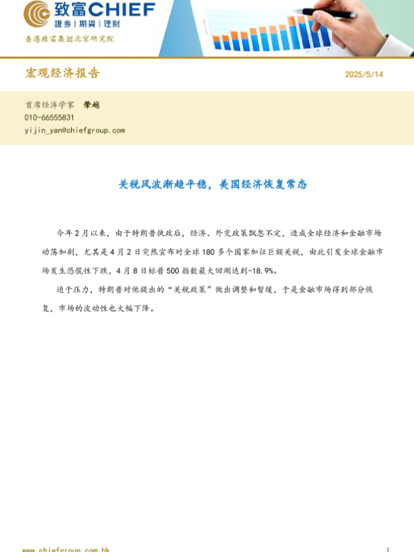 【致富证券】【20250514】关税风波渐趋平稳,美国经济恢覆常态-13页