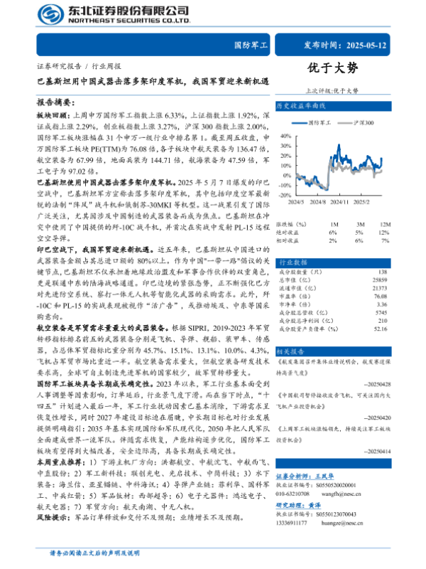 【东北证券】【20250512】巴基斯坦用中国武器击落多架印度军机,我国军贸迎来新机遇-17页