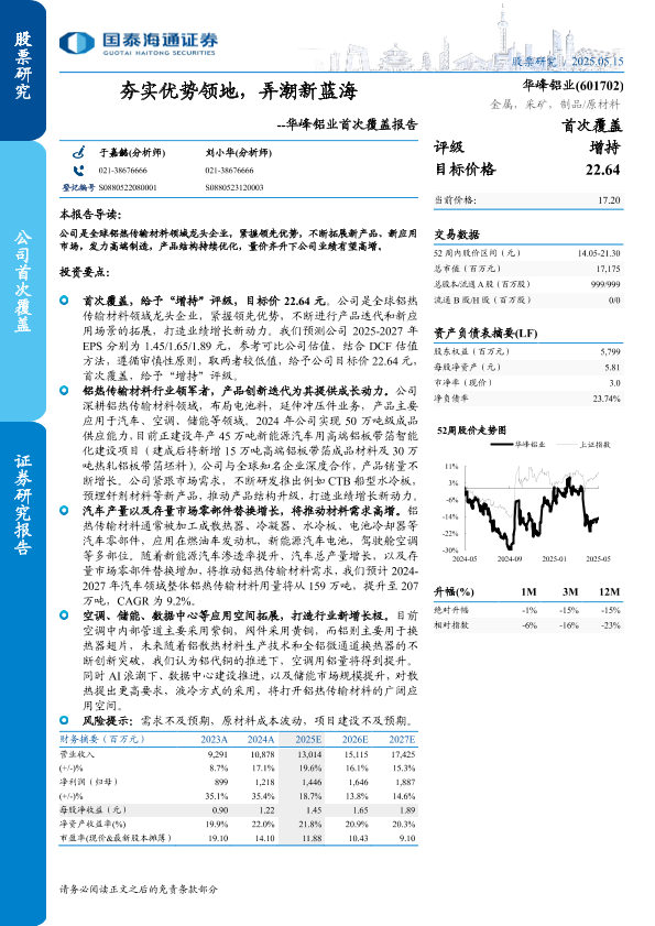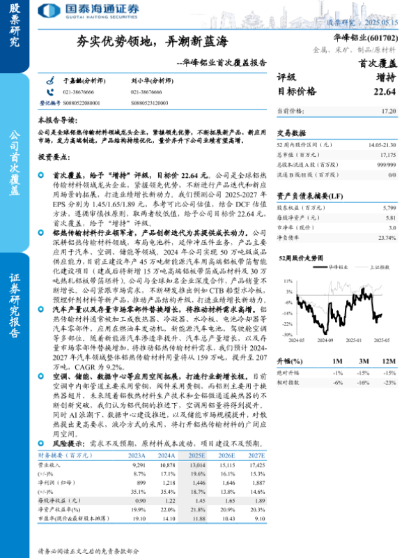 【国泰海通证券】【20250515】华峰铝业(601702)首次覆盖报告:夯实优势领地,弄潮新蓝海-19页