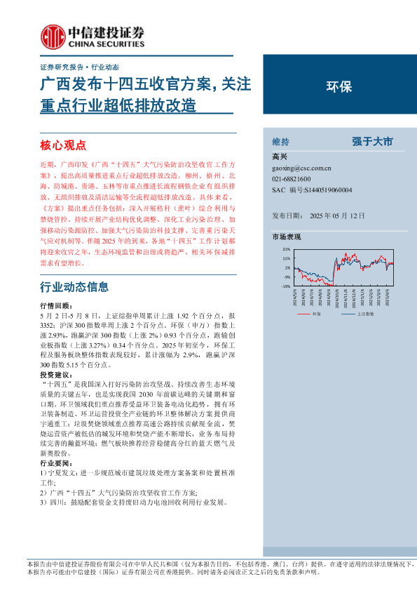 【中信建投证券】【20250512】环保行业:广西发布十四五收官方案,关注重点行业超低排放改造-12页
