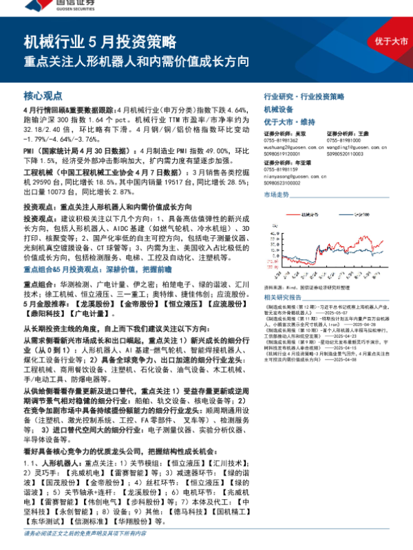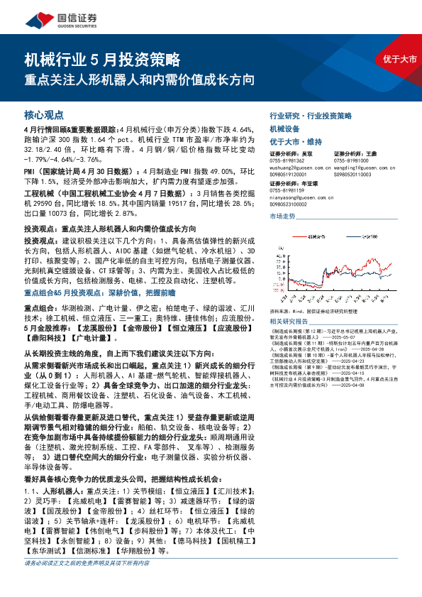 【国信证券】【20250513】机械行业5月投资策略:重点关注人形机器人和内需价值成长方向-24页