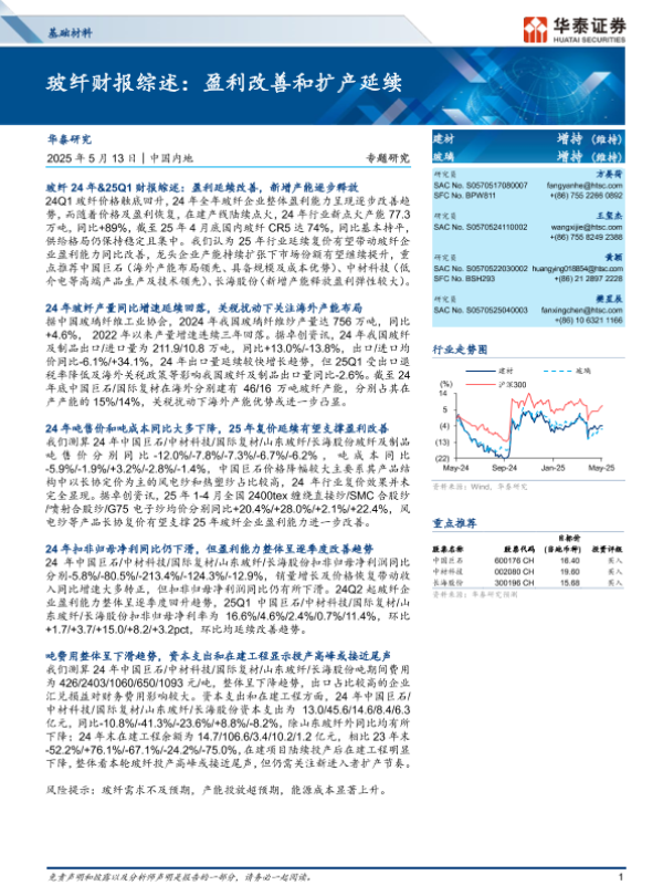 【华泰证券】【20250513】基础材料行业:玻纤财报综述,盈利改善和扩产延续-12页