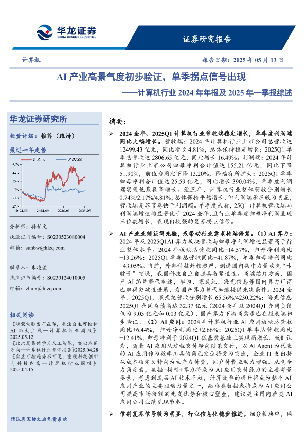 【华龙证券】【20250513】计算机行业2024年年报及2025年一季报综述-22页
