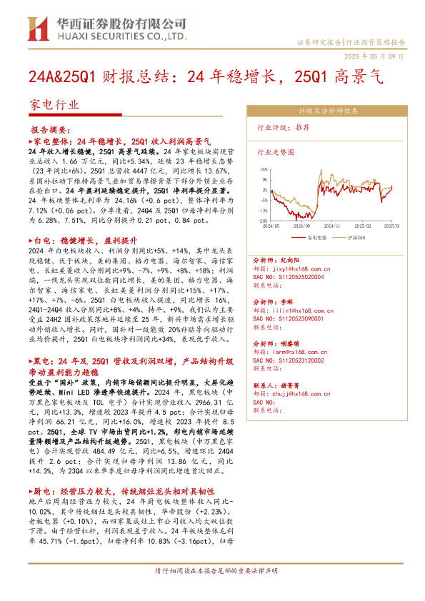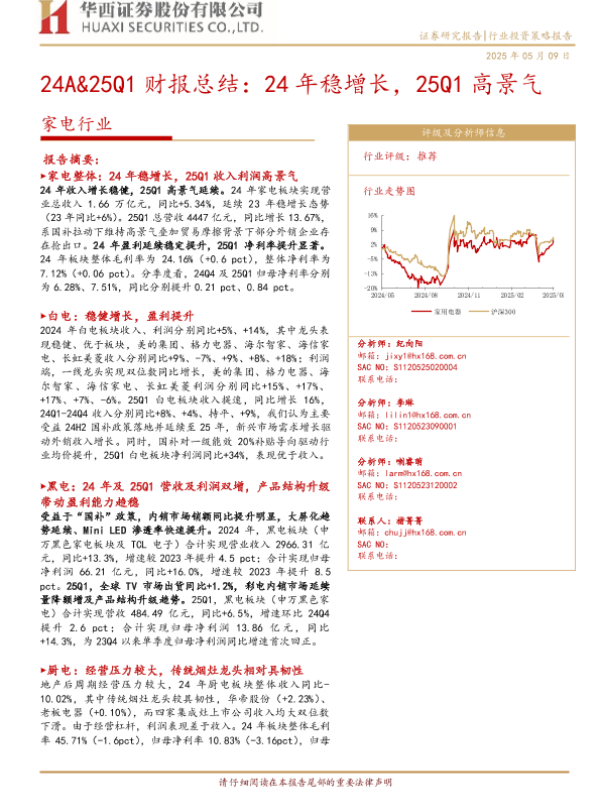 【华西证券】【20250509】家电行业投资策略报告24A&25Q1财报总结-21页