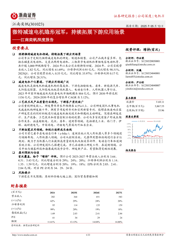 【浙商证券】【20250513】江南奕帆(301023)深度报告:微特减速电机隐形冠军,持续拓展下游应用场景-22页