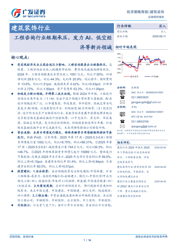 【广发证券】【20250511】建筑装饰行业:工程咨询行业短期承压,发力AI、低空经济等新兴领域-16页