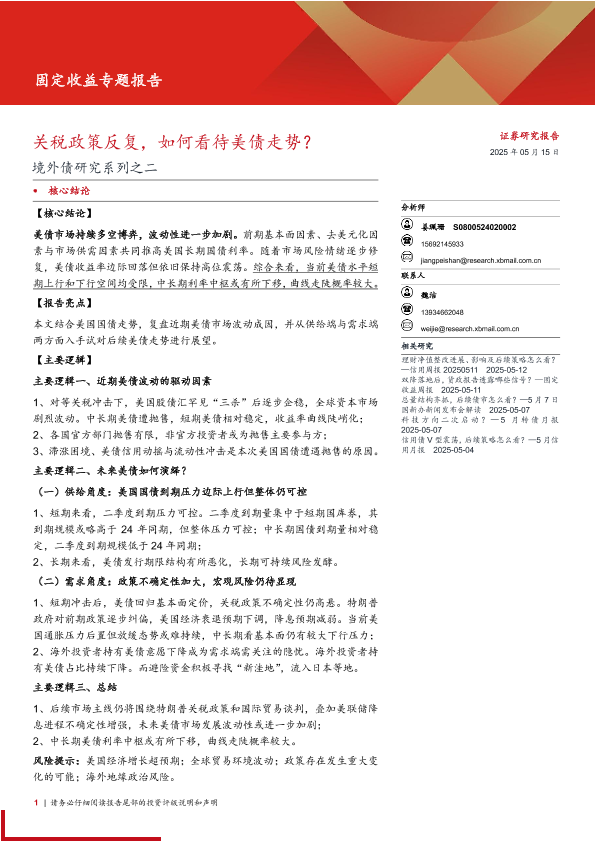 【西部证券】【20250515】境外债研究系列之二:关税政策反复,如何看待美债走势?-15页