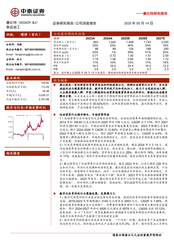 【中泰证券】【20250514】康比特研究报告:运动营养第一股,体育科技谋新篇-24页