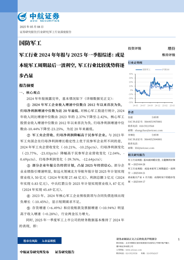 【中航证券】【20250508】军工行业2024年年报与2025年一季报综述-43页