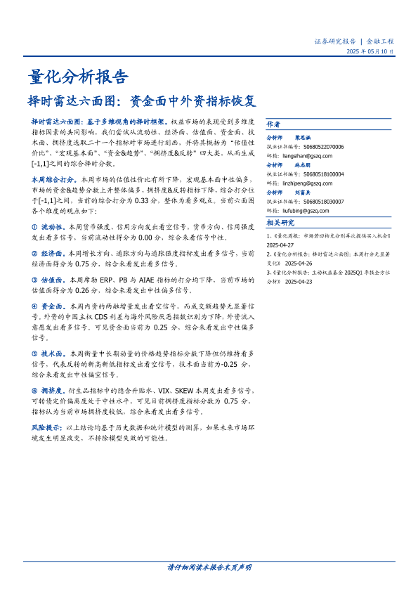 【国盛证券】【20250510】量化分析报告:择时雷达六面图,资金面中外资指标恢复-16页