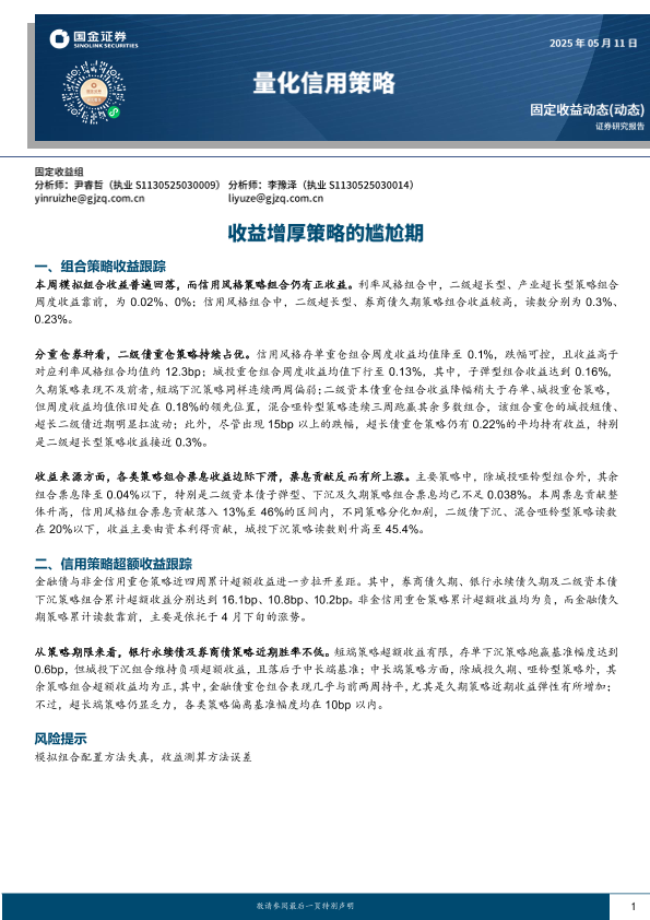 【国金证券】【20250511】量化信用策略:收益增厚策略的尴尬期-11页