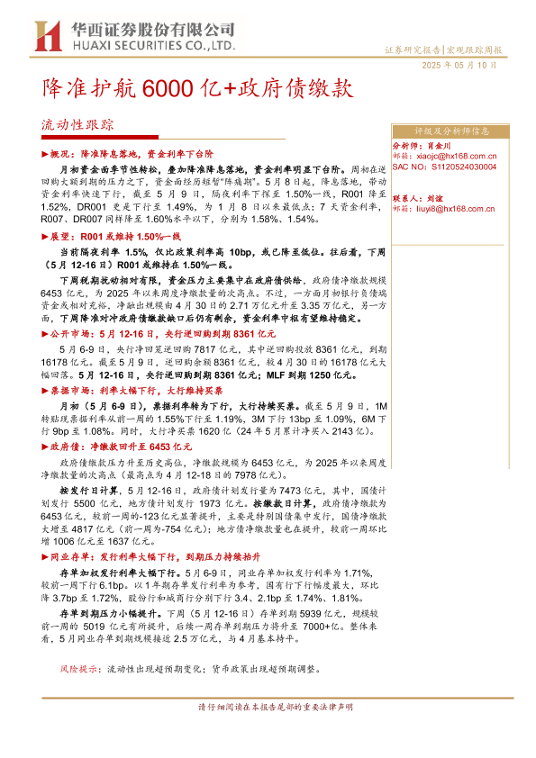 【华西证券】【20250510】降准护航6000亿+政府债缴款-20页