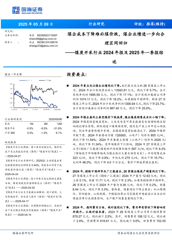【国海证券】【20250509】煤炭开采行业2024年报及2025年一季报综述-26页