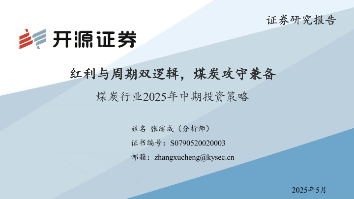【开源证券】【202505】煤炭行业2025年中期投资策略:红利与周期双逻辑,煤炭攻守兼备-47页