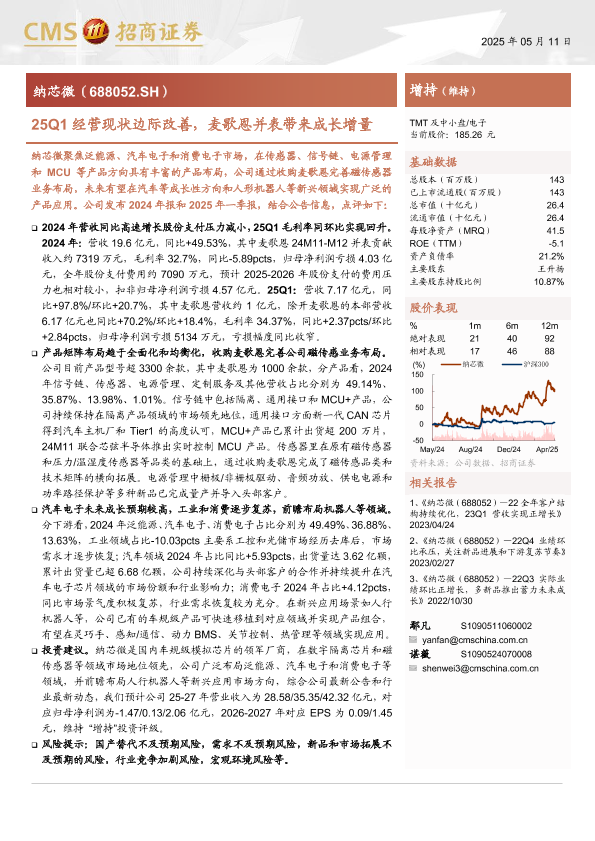 【海通证券】【20250511】纳芯微25Q1经营现状边际改善,麦歌恩并表带来成长增量-16页