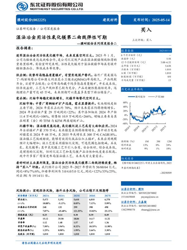 【东北证券】【20250514】濮耐股份(002225)系列深度报告二:湿法冶金用活性氧化镁第二曲线弹性可期-29页