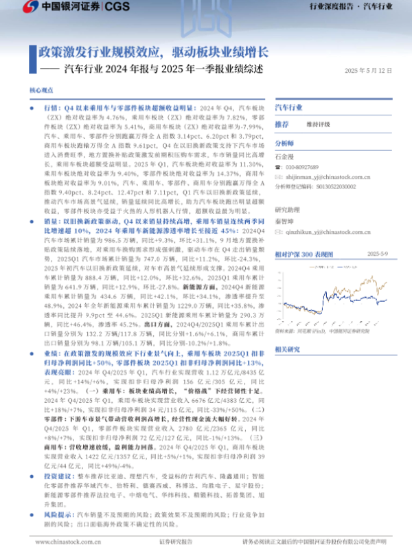 【银河证券】【20250512】汽车行业2024年报及2025年一季报业绩综述-28页