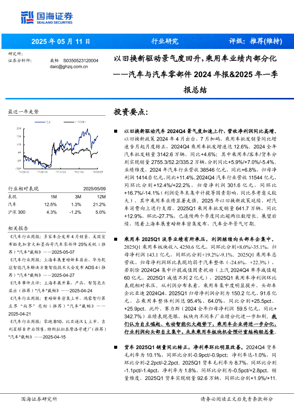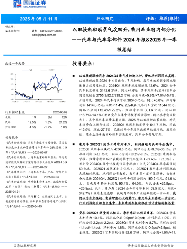【国海证券】【20250511】汽车与汽车零部件行业2024年报&2025年一季报总结-25页