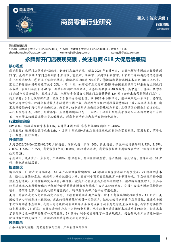 【国金证券】【20250511】商贸零售行业研究:永辉新开门店表现亮眼,关注电商618大促后续表现-10页