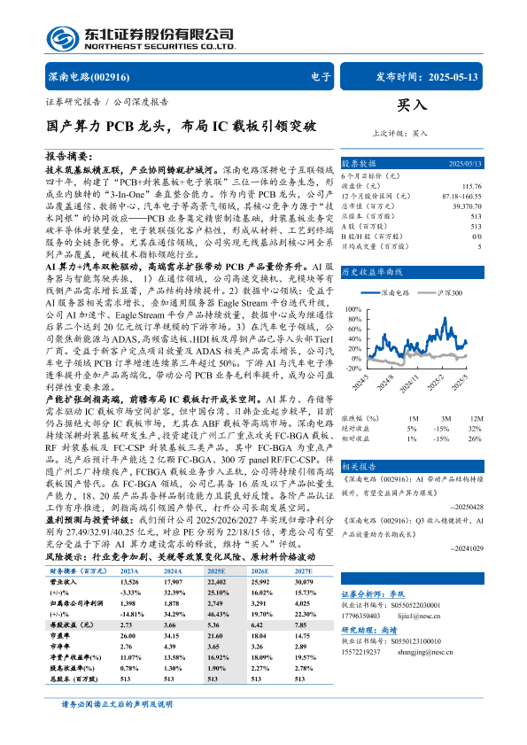 【东北证券】【20250513】深南电路(002916)国产算力PCB龙头,布局IC载板引领突破-35页