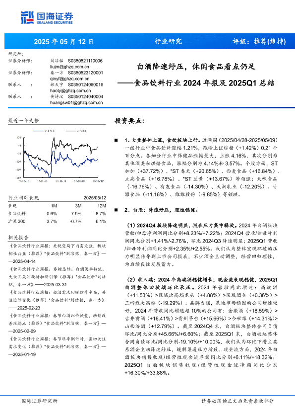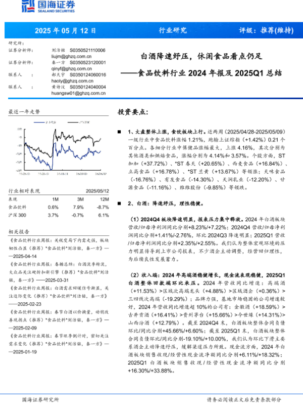 【国海证券】【20250512】食品饮料行业2024年报及2025Q1总结-15页