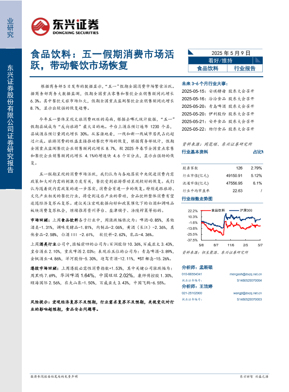 【东兴证券】【20250509】食品饮料行业报告:五一假期消费市场活跃,带动餐饮市场恢复-10页